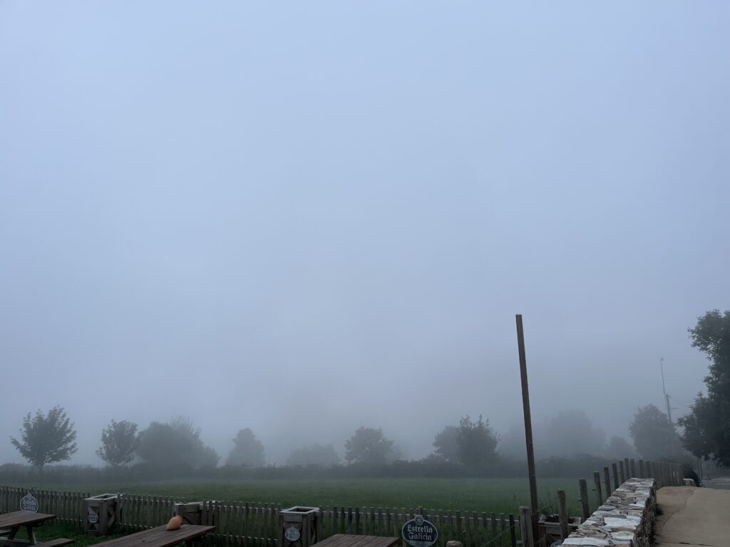 Szykuję się mentalnie na tę wegetariańską kolację. Mam skitrane trochę szynki w plecaku, ale musiałbym wyjść z albergue by to skonsumować…