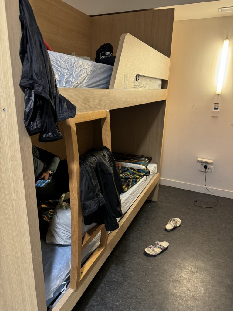 „Śniadanie” wydawane było od 7:00 do 7:30. Było jasno powiedziane, ze o 7:30 nie ważne co, ale trzeba się zbierać! Na ten najważniejszy posiłek dnia wydawano: starą gumową bagietkę, masło, ciapkę dżemu, płatki z mlekiem, „kawę” i coś co kiedyś było sokiem, chociaż dziś już nie wiadomo jakim. Przed chwilą zaś dowiedziałem się, że kilometr dalej w nowym albergue, były dobre warunki nocowania i pyszna kolacja i śniadanie… Może next time.