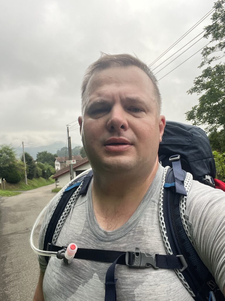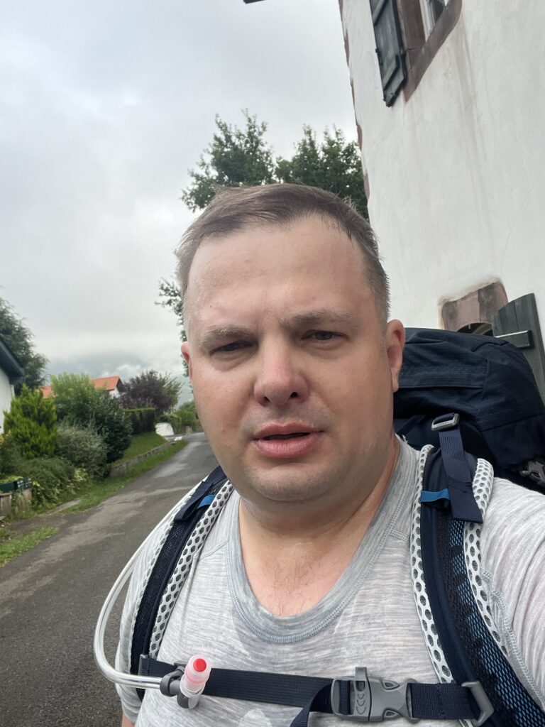 Podróż drogą św. Jakuba uznaję za rozpoczętą! Wyruszyłem zaraz po śniadaniu (też dobra historia, ale to na końcu), bladym świtem czyli o 8:25. Lekko niedospany, z opuchniętymi oczętami, ale głową pełną marzeń i sercem przepełnionym nadzieją na spokojne dotarcie do dzisiejszego dnia spoczynku. W końcu to tylko 8km…