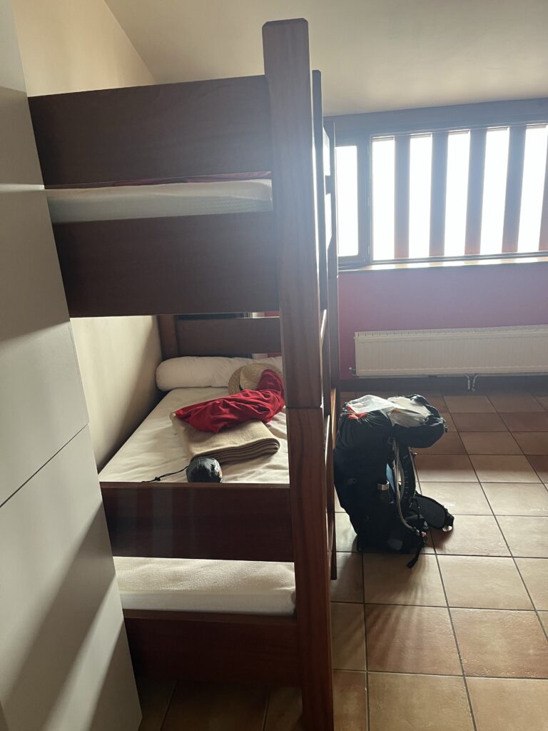 Pościeliłem materac i i oblokłem poduszkę otrzymanymi cieniutkimi fizelinowymi prześcieradłem i poszewką. Dostałem też żeton na prysznic. Jeden. Czas trwania 5 min. Czy można drugi? Nie. Czy można dokupić drugi? Nie. Bo woda z gór itp itd.