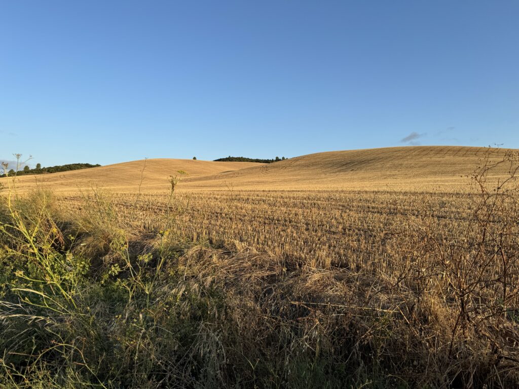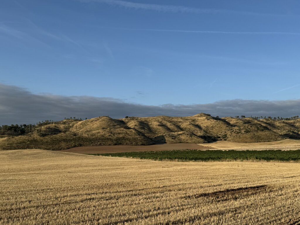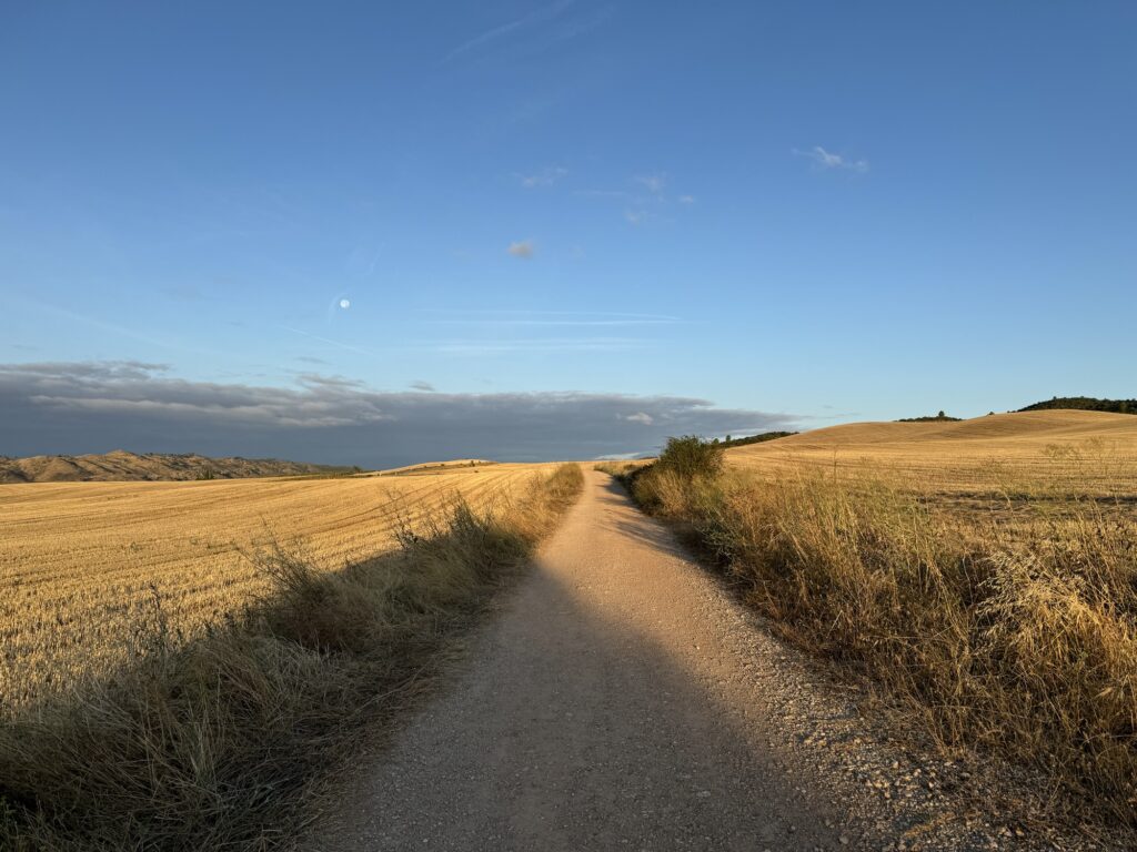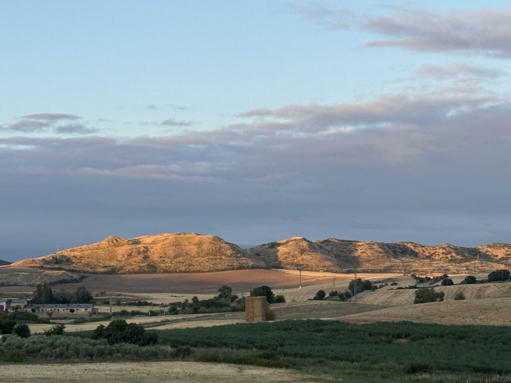 Był piękny poranek, chłodny, niebo zaróżowione na horyzoncie a w powietrzu unosił się delikatny zapach ziół zmieszanych ze skoszonym zbożem. W takich okolicznościach wyszliśmy na szlak i ruszyliśmy w kierunku pierwszego większego przystanku na dzisiejszej drodze, czyli do miejscowości Los Arcos.