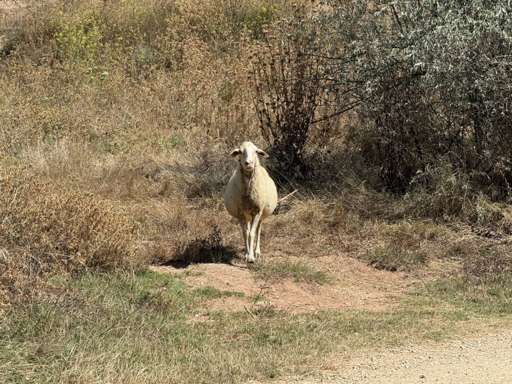 Ta owca chciała nas napaść gdy na chwile zatrzymaliśmy się na odpoczynek! Schylała głowę i tupała kopytkiem. Na szczęście zanim na nas ruszyła, to przeszła inna pątniczka, zaczęła z nią rozmawiać po francusku i owca poszła za nią 🙈