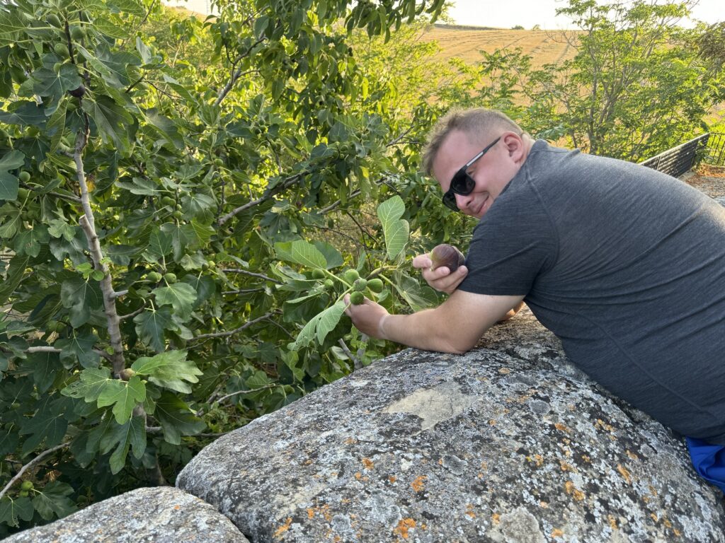 Po dotarciu na miejsce, umyciu się, posileniu, zregenerowaniu w basenie, nadszedł czas zwiedzania miasta. I przy jednym z kościołów były piękne, dojrzałe figi. Skuszony namowami postanowiłem zerwać kilka tych owoców…