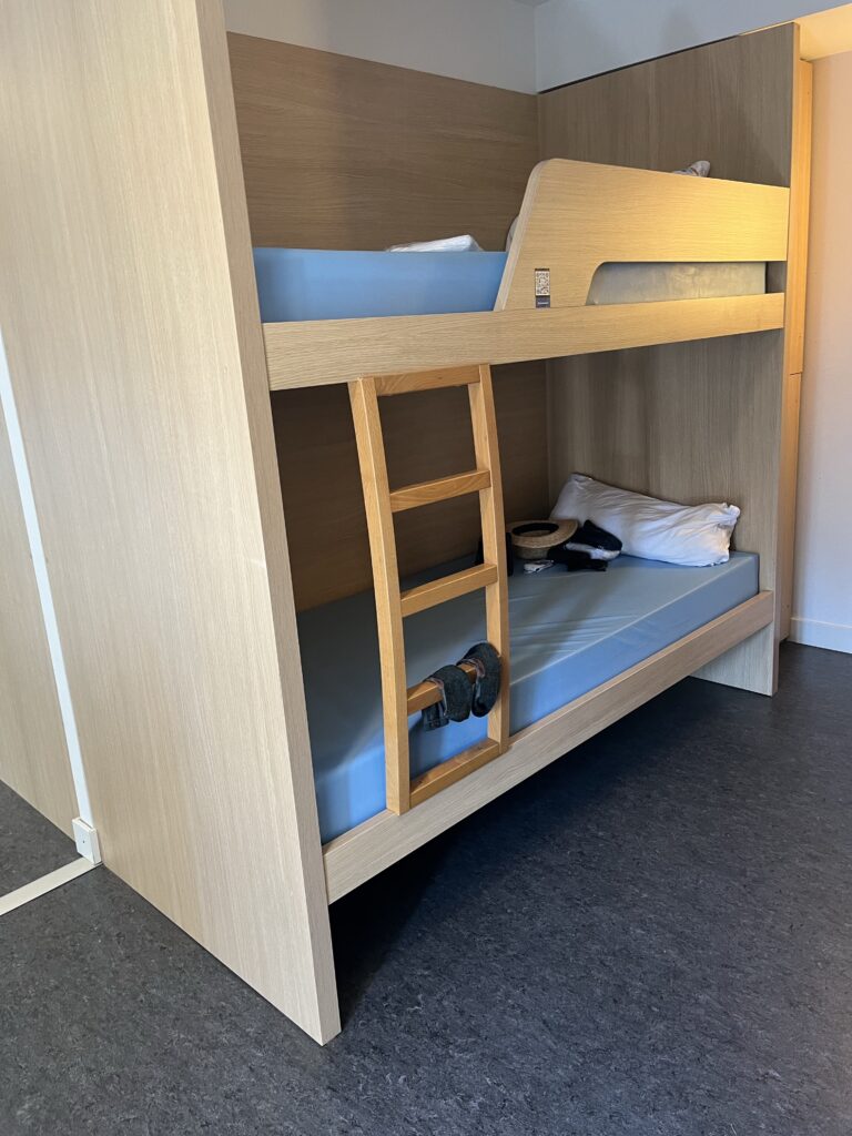 O 7:00 zaserwowano śniadanie. Na każdego czekał talerzyk i na nim odwrócona miseczka. A na stole wczorajsze bagietki, masło i dżemy. Miseczki myślałem, że do mleka, płatków, ale nie. Do kawy, herbaty czy kakao. Jak jedna Francuzka siedząca koło mnie zanurzyła sobie bagietkę z dżemem w kawie z mlekiem, zdecydowałem, że śniadanie czas skończyć i można skorzystać z wolnej już łazienki!