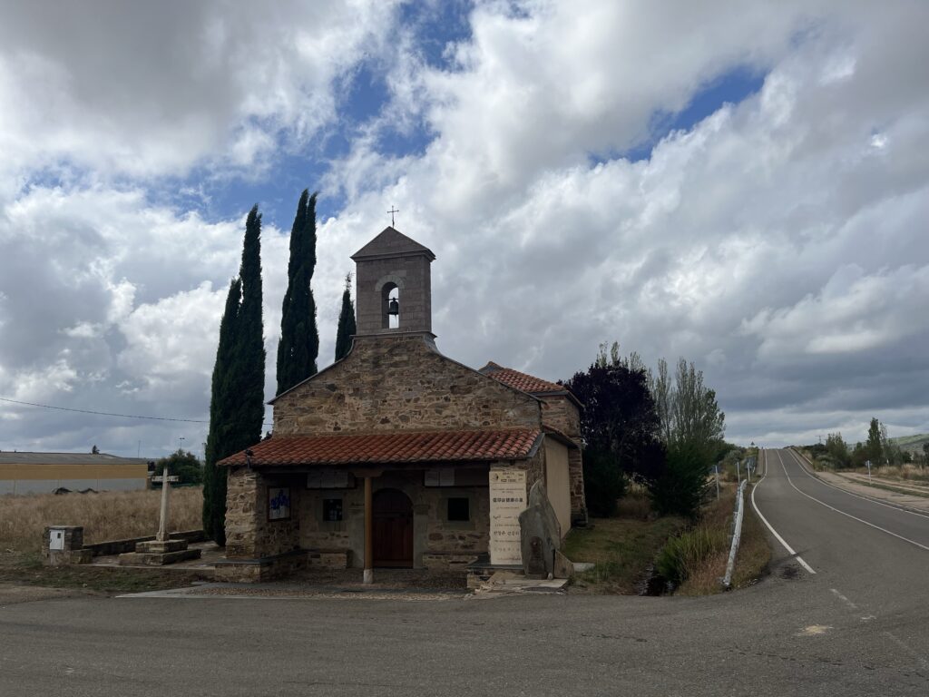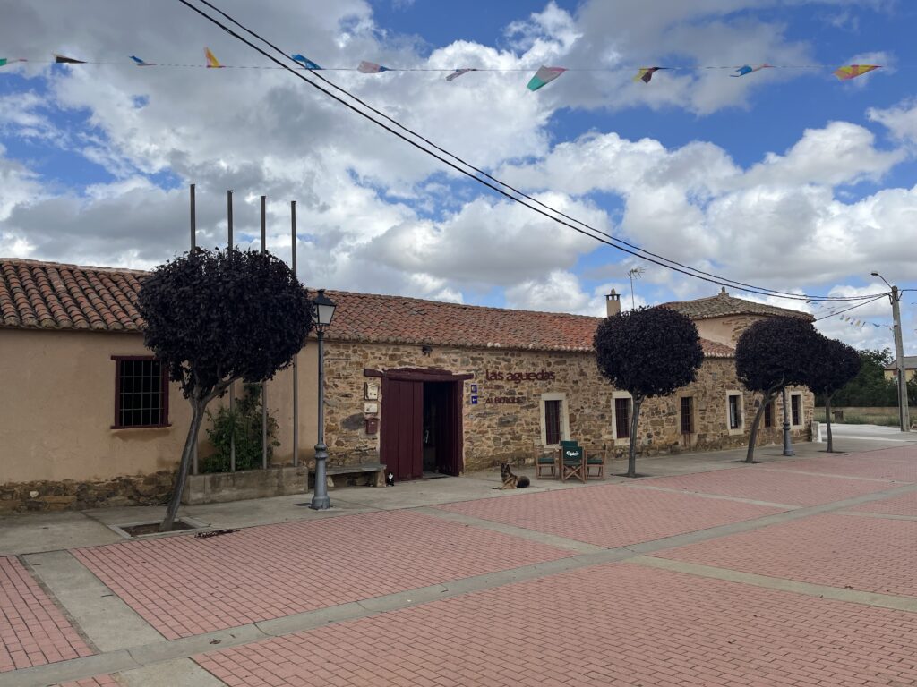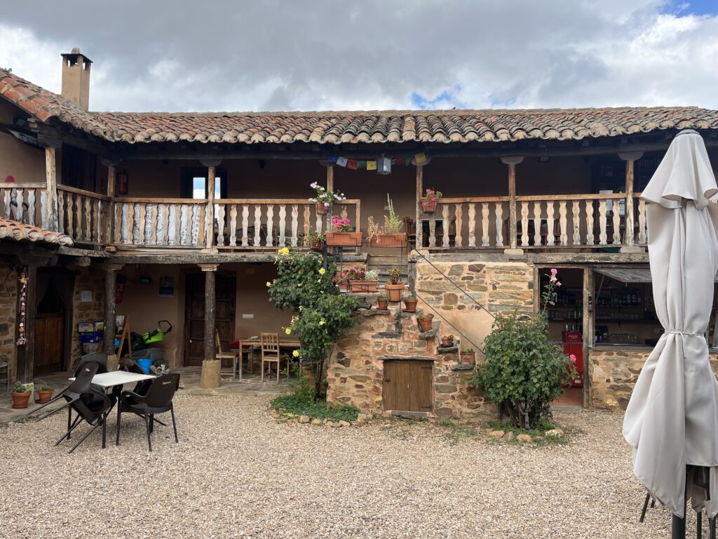 Siedzę właśnie przed albergue w malutkiej wiosce Murias de Rechivaldo, na samym końcu wsi. Kruki już tutaj zawracają. Ale jest cudowny spokój i cisza. Posiliłem się chorizo, lód chłodzi kolano od zewnątrz, fanta z lodem chłodzi kolano od wewnątrz. Słonko czasem wyjrzy zza chmur. Pranie schnie, wszystko na dzisiaj już zrobione. Jest błogo. Co więcej, mam papierosy, ponieważ dzisiaj z rana lało, więc wsiadłem w autobus do Leon, tam nabyłem zapasik heetsów, wróciłem do Astrorgi i stamtąd zrobiłem tylko 5 km. Ale pokręciwszy się trochę tam i tu zrobiony łączy dystans to 12 km.